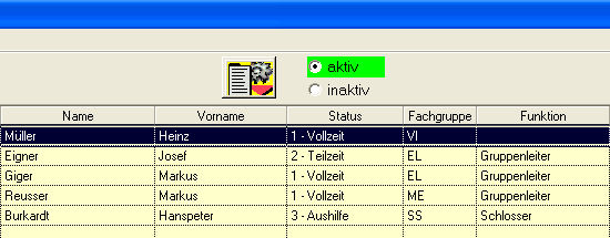 Status | Geben Sie an, welchen Status der Mitarbeiter hat. Die möglichen Stati sind Vollzeit, Teilzeit, Aushilfe, Beurlaubt oder Ausgetreten. Mit der Vergabe des Status hier nehmen Sie automatisch auch eine Zuordnung zu den Zuständen "aktiv" oder "inaktiv" vor: Die Stati "1 - Vollzeit", "2 - Teilzeit" und "3 - Aushilfe" sind "aktive" Stati, die anderen beiden gehören zur Kategorie "inaktiv". (Siehe auch Inaktive anzeigen). |