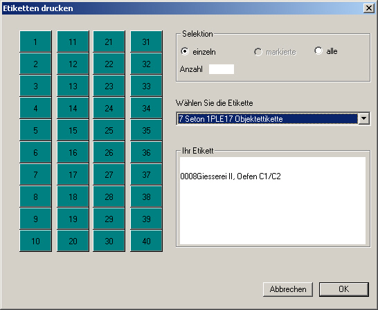 Hier können von Artikeln, Adressen oder Objekten Etiketten gedruckt werden.