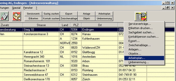 Hier ein Beispiel des Optionsmenüs der Adressverwaltung: